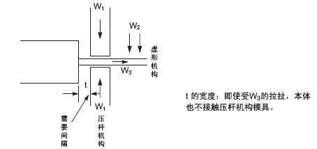 另外,當使用模具進行大量引線的成型時,必須設置固定引線的機構,要注意引線壓桿機構不能對器件本體施加壓力。如下圖: