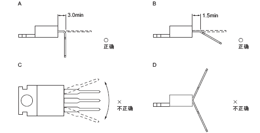 (3)不能重復彎折引腳。 (4)不能向外側彎折引腳。 ? |